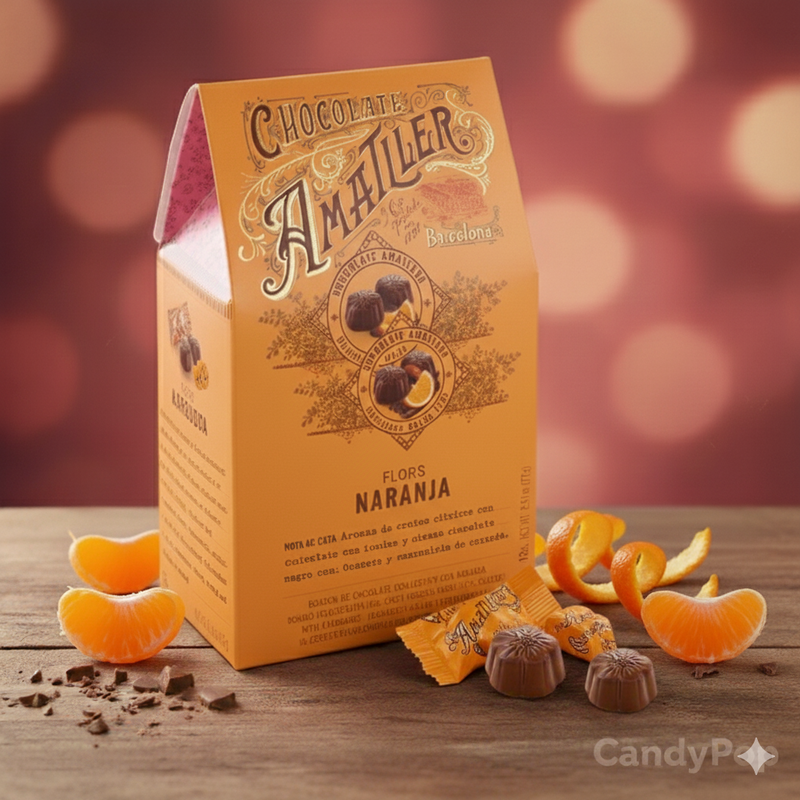 Sumérgete en una experiencia de sabor inolvidable con las Flores con Naranja de Amatller. Esta exquisita creación de la histórica marca Amatller Chocolates, que data de 1797, despierta tus sentidos al fusionar el intenso aroma del cacao con la frescura vibrante y cítrica de la naranja. Cada bombón es un viaje sensorial, diseñado para deleitar a los paladares más exigentes que buscan la combinación perfecta entre dulzura y acidez.
