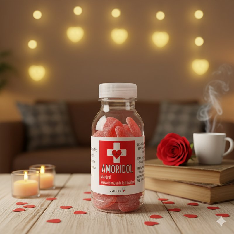 Cada dosis es una explosión de sabor. La presentación tipo "medicamento" de Zabdy hace de Amoridol un regalo original y divertido, perfecto para sorprender a tu pareja, a esa persona especial, o incluso para darte un capricho. Es el detalle ideal para San Valentín o cualquier aniversario, garantizando risas y dulzura. No esperes a que los síntomas del desamor aparezcan: ¡Rellena tu vida de dulzura con esta fórmula de la felicidad!