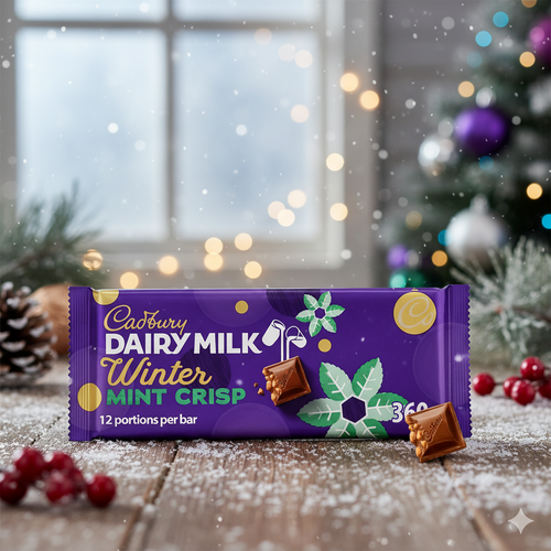 Prepárate para la explosión de sabor más refrescante y reconfortante del invierno. Te presentamos la tableta gigante de Cadbury Dairy Milk Winter Mint Crisp, una auténtica delicia británica que redefine el placer del chocolate. Imagina la cremosidad inigualable del clásico chocolate con leche Dairy Milk fusionada con el toque fresco e invernal de la menta crujiente. Es el bocado perfecto para encender la chispa festiva y disfrutar de una experiencia sensorial única.