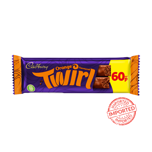 Dos barritas de chocolate Cadbury con un interior de vituras de chocolate con leche. Ahora con un irresistible sabor a naranja.