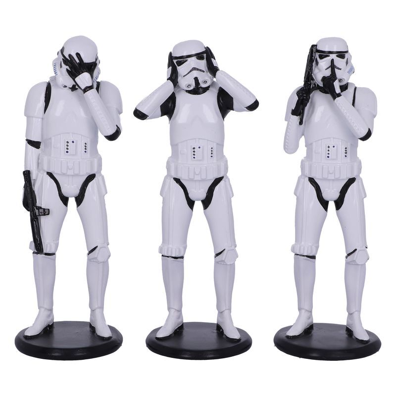 Contiene una figura de resina de alta calidad con tres Stormtroopers imitando a los tres monos sabios.Es un producto oficial de Star Wars.