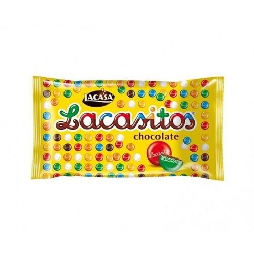Chocolate con leche (62%) [azúcar, manteca de cacao, pasta de cacao, leche entera en polvo, leche desnatada en polvo, emulgente (lecitina de girasol) y aroma natural de vainilla. Cacao 37% mínimo], azúcar, almidón de arroz, agentes de recubrimiento (E-414, E-903, E-901), colorantes (E-163, E-101, E-120, E-141, E-160a, E-153).
