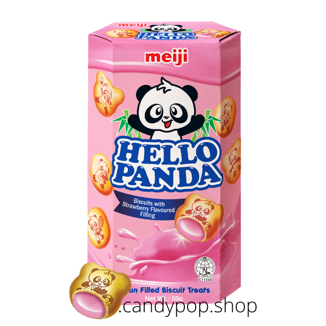 Hello Panda Fresa son unas deliciosas galletas rellenas de crema de fresa con forma de panda. Cada galleta tiene un dibujo diferente de un panda practicando algún deporte, lo que las hace divertidas y originales.