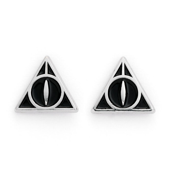 Los pendientes Deathly Hallow son unos accesorios inspirados en el símbolo de las reliquias de la muerte, que aparecen en la saga de libros y películas Harry Potter.