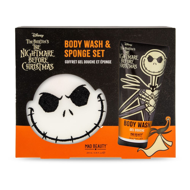 El set incluye un refrescante gel de ducha de 200 ml, decorado con el icónico Rey Calabaza, y una suave esponja con la forma inconfundible del rostro de Jack Pesadilla Antes de Navidad. Transforma tu rutina de baño en una experiencia divertida y llena de estilo, llevando la magia de Halloween Town a tu hogar.