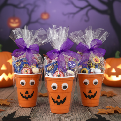 Prepárate para la noche más terrorífica del año con nuestro exclusivo Vaso Chuches Variadas Halloween. Este no es solo un recipiente, ¡es una pequeña calabaza sonriente repleta de escalofriantes y deliciosas sorpresas! La combinación de vibrantes colores naranja y el lazo morado prepara tus sentidos para una explosión de sabor y diversión, perfecta para el truco o trato o para decorar tu fiesta temática de Halloween. Es el regalo ideal para los amantes de lo dulce y lo espeluznante.